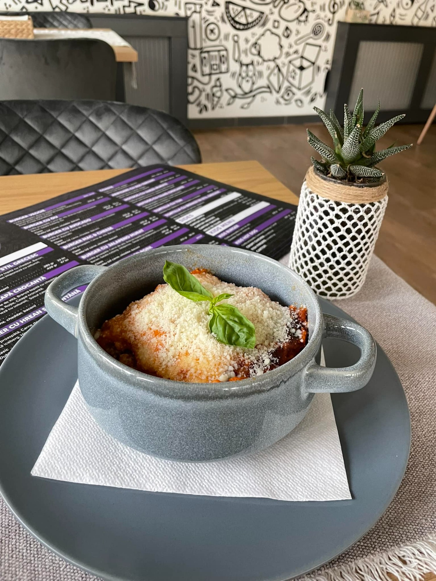 sos Bolognese, sos bechamel, mix de brânză (parmean), sos roșu